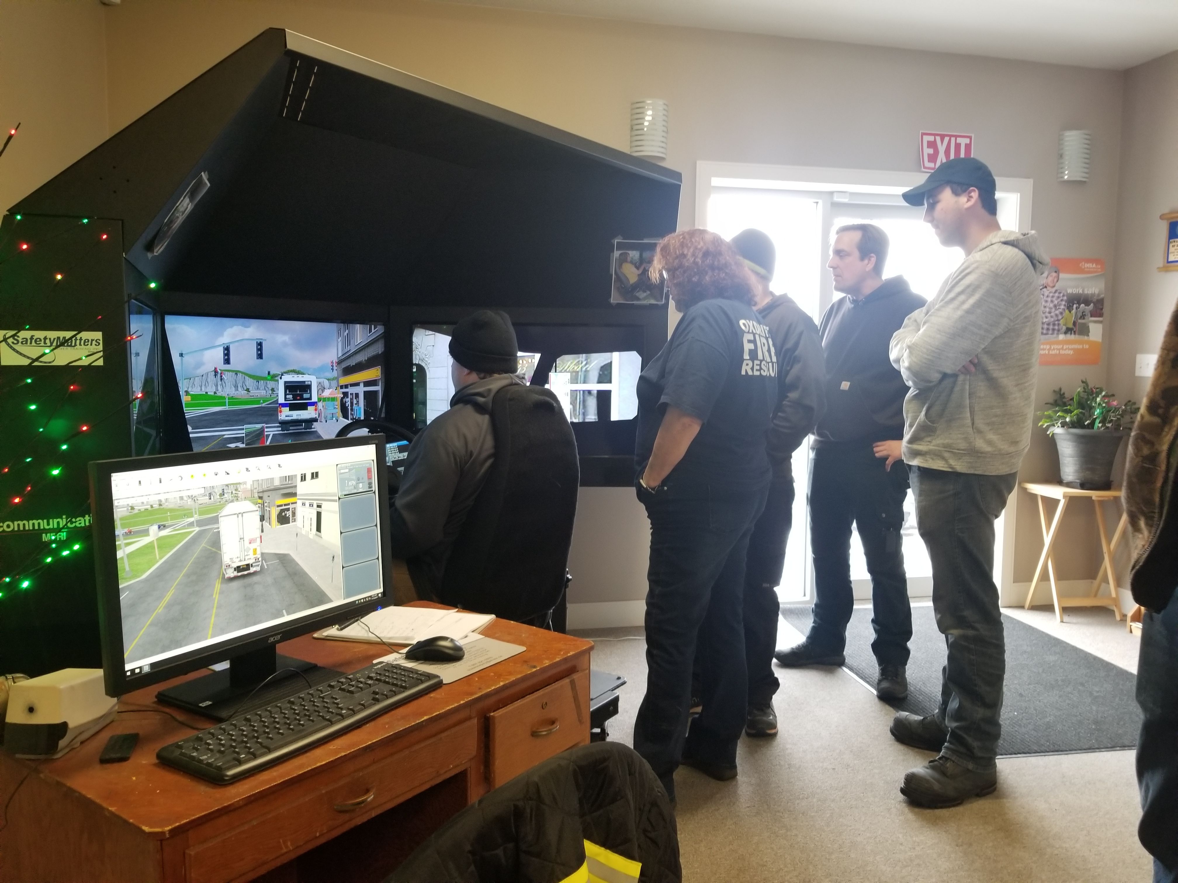 The simulator we have is TransimVS6 which can be used for Commercial trucks, fire trucks, snow plows, buses, ect… Having a 180-degree view, using three 55" full HD resolution (1920x1080) allows for the design and delivery of realistic driving conditions. Force loaded steering provides real-time feedback during situations such as blown tires and sloshing loads.